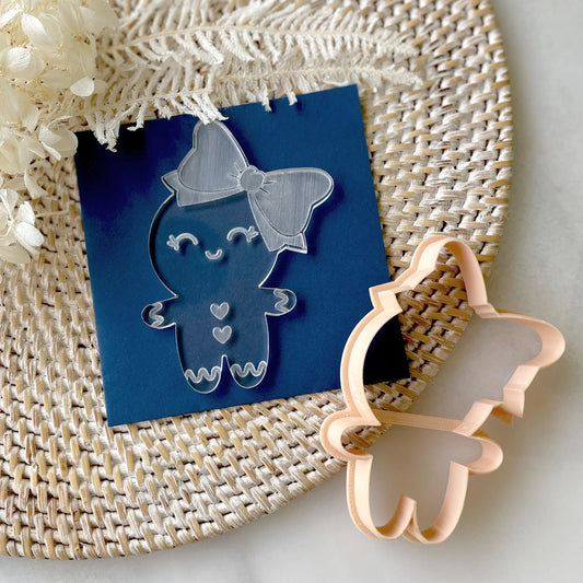 Gingerbread Girl with Bow Cutter & Debosser Set (Little Biskut) - SMALL 58mm wide x 82mm