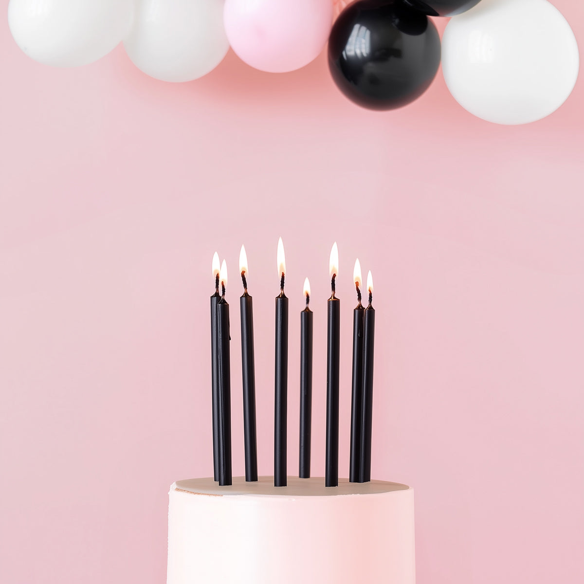 12cm Tall Cake Candles BLACK (Pack of 12)