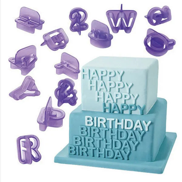 40 piece alphabet & number set. Create fantastic messages on your birthday cakes with this great Cake Craft 40 Piece Alphabet & Numbers Cut-Outs Set. Each set contains 26 plastic letters, 9 plastic numbers and 5 plastic punctuation mark shapes measuring approx 2cm high. Just roll out fondant, press down with a cut-out and lift away. Makes decorating a cake a breeze - in minutes, you can punch out fondant letters to spell "Happy Birthday" or whatever words or number you need!