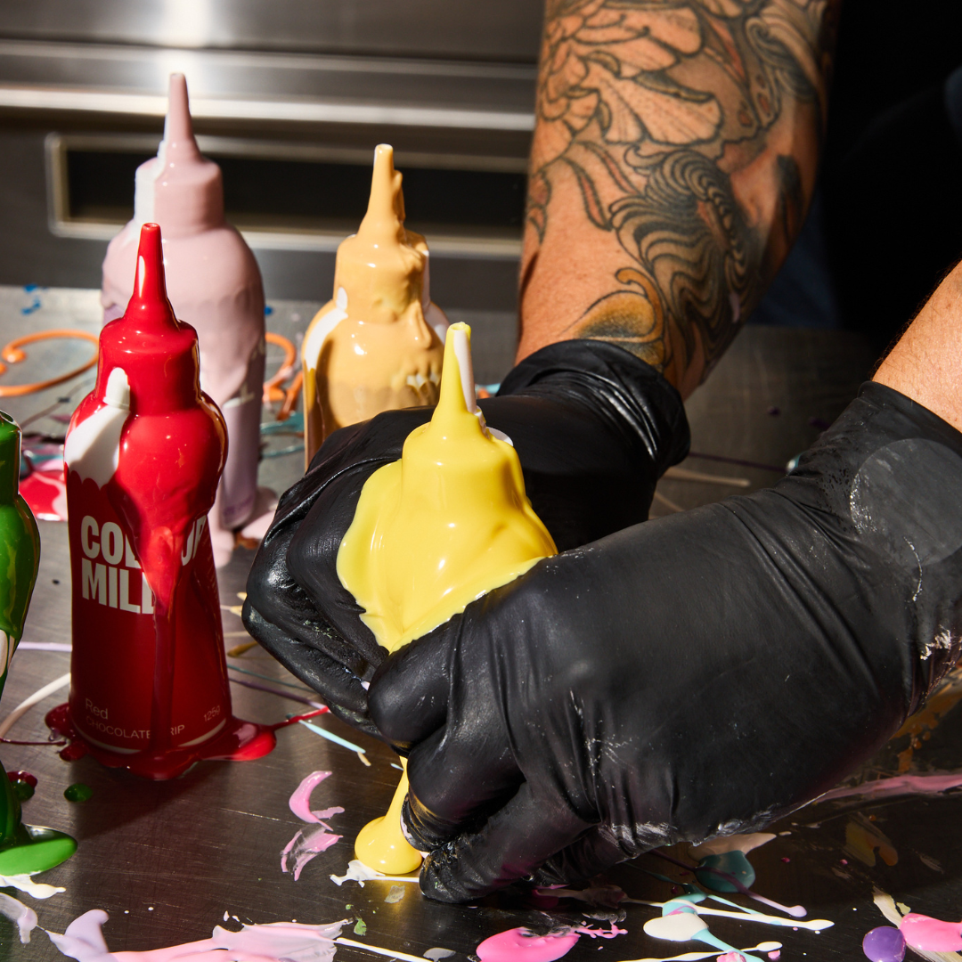 Ingredients: Sugar, Vegetable Fats & Oils, Emulsifiers (E322, E433, E492), Whey Powder, Flavours, Antioxidant (E307, E307B), Milk Solids, Cream Powder, Glycerol (E422), Canola Oil, Colour (E102*).