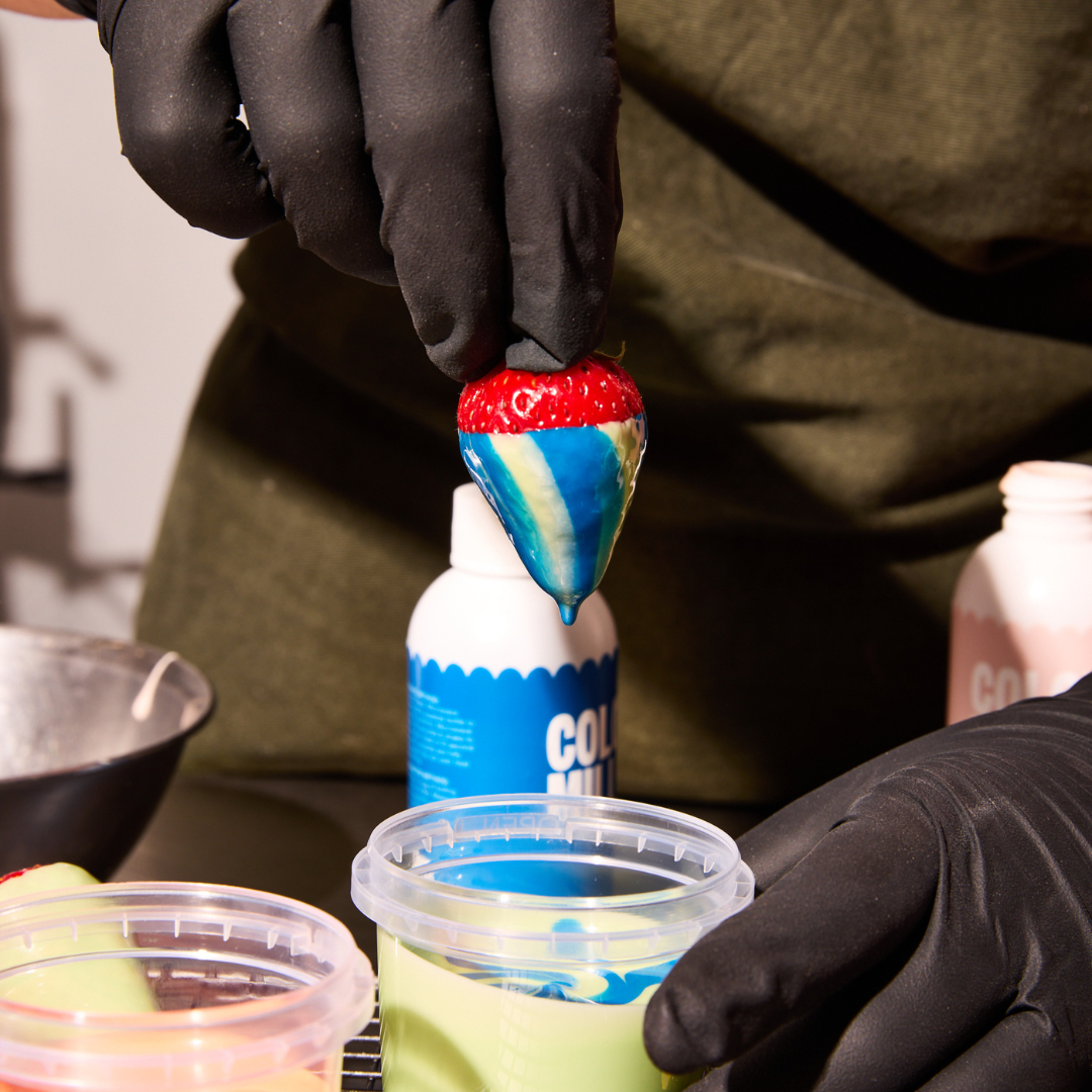 Turning heads with its strong saturation and cool undertones, Colour Mills Cobalt is an electric blue boldly adorning your bake and ready to strike. Additionally, this drip is Halal certified and gluten free!