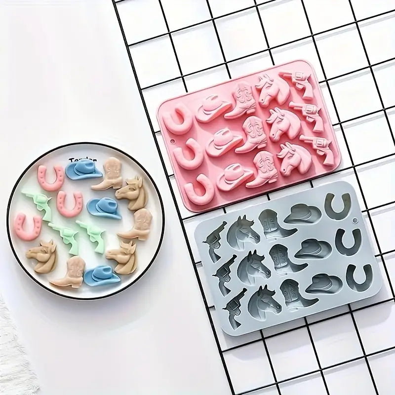 Western Cowboy Theme Silicone Mold for Baking - Light Blue & Pink Horse & Cowboy Boot Design, Food-Grade Silicone, Christmas Easter Father’s Day Candy Chocolate Cake Soap Molds, Silicone Baking Molds, Holiday Treat Crafting, Cowboythemed Mold, Playful Kitchenware