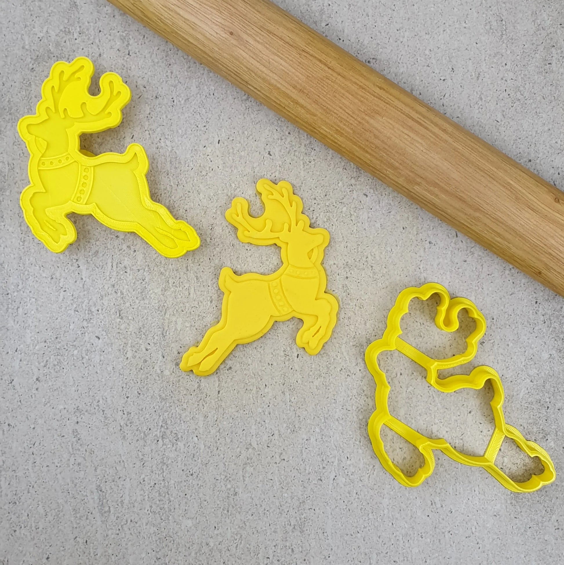 Celebrate Christmas with a batch of unique cookies using our "Flying Reindeer Cutter and Debosser" set