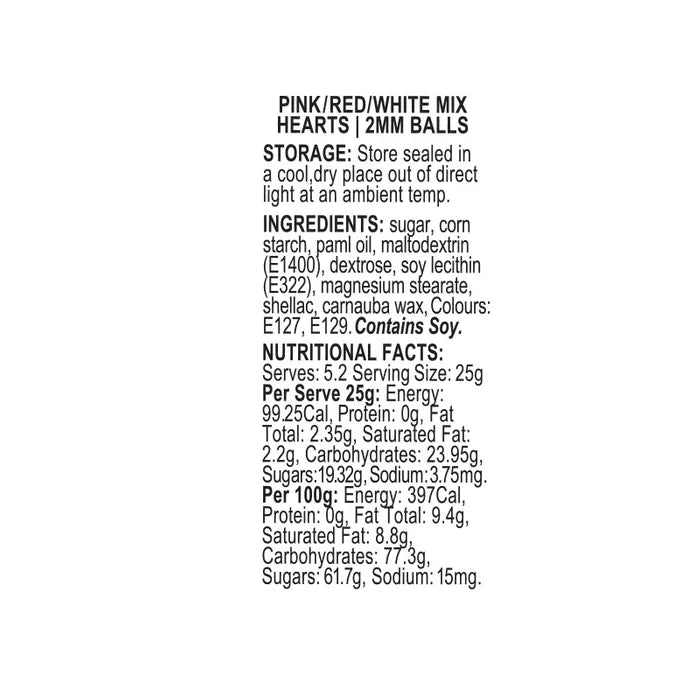 SPRINK'D | PINK/RED/WHITE MIX | HEARTS/2MM SUGAR BALLS | 60G