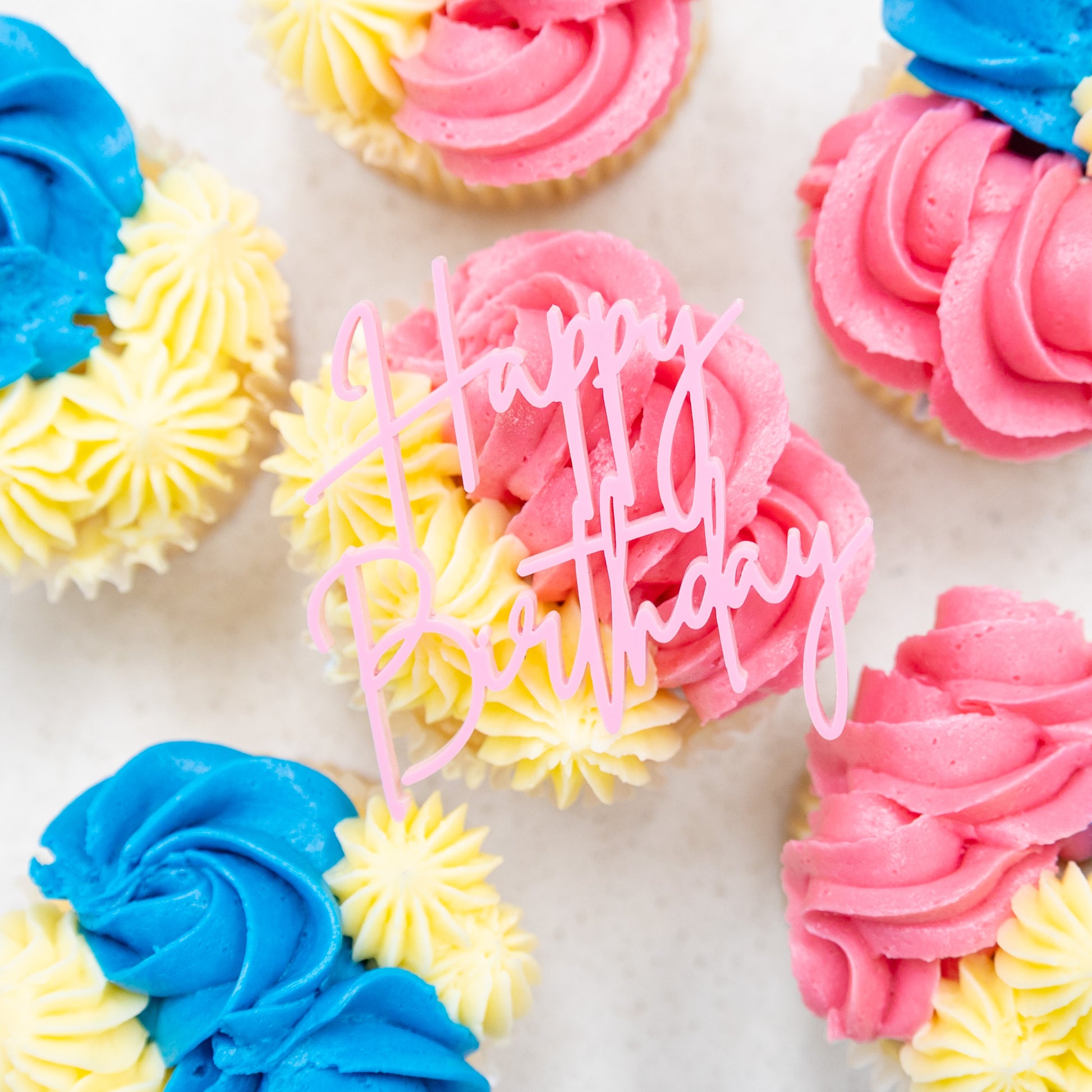 The Happy Birthday Acrylic Cupcake Charms by Sweet Cartel are the perfect final piece to pop on your cupcakes! They also work perfectly as mini cake toppers.