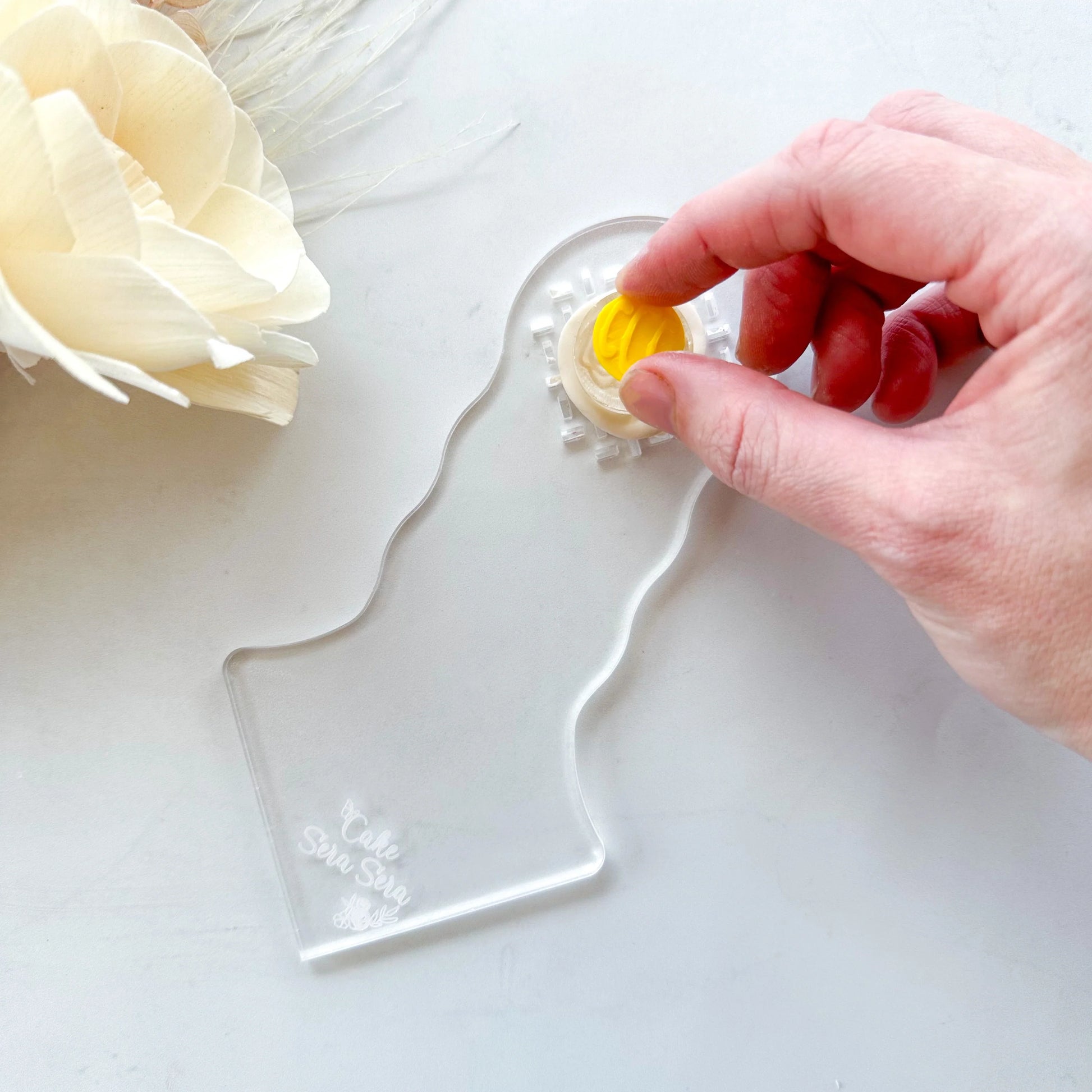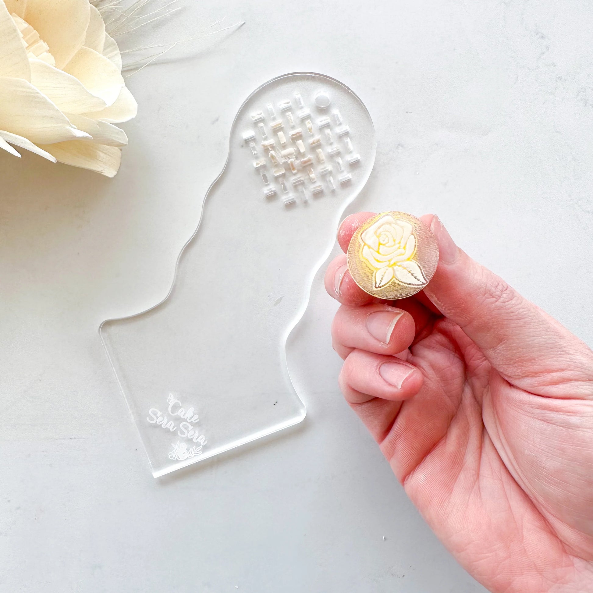 Designed to fit comfortably in either hand this tool allows maximum pressure to be able to be put down to hold the fondant in the debosser while pulling away the excess.